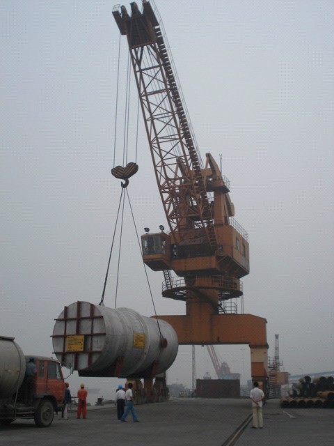 埃及40萬噸硫磺制酸項目的直徑四米五,重50噸的換熱器發(fā)往埃及現(xiàn)場